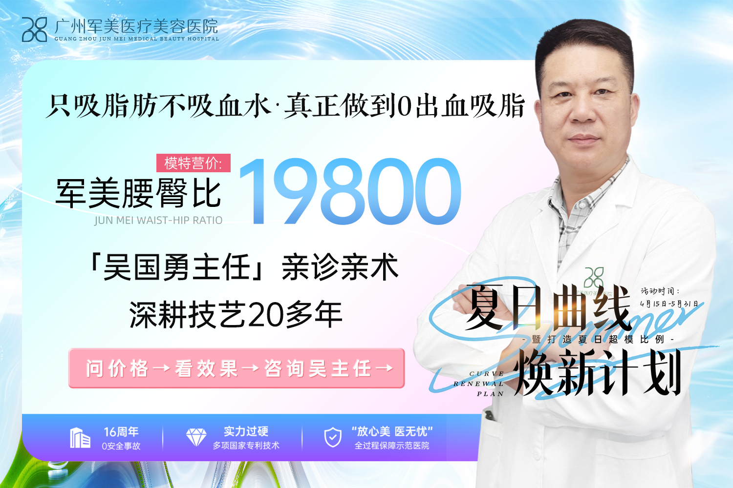 吴国勇二十多年临床经验,副主任医师,多维立体吸脂法实战派,专注脂肪艺术体雕与眼鼻精雕,精细脂肪移植整形理念提倡者,现担任广州军美医疗美容医院整形外科院长。